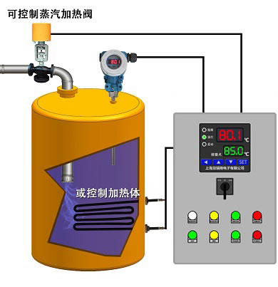 | 應(yīng)用舉例一:某化工生產(chǎn)的反應(yīng)釜,需要在 60℃-70℃環(huán)境下進(jìn)行反應(yīng),蒸汽通過一條DN50的管道對(duì)反應(yīng)釜經(jīng)行加熱,且當(dāng)溫度高于73℃ 或低于 |