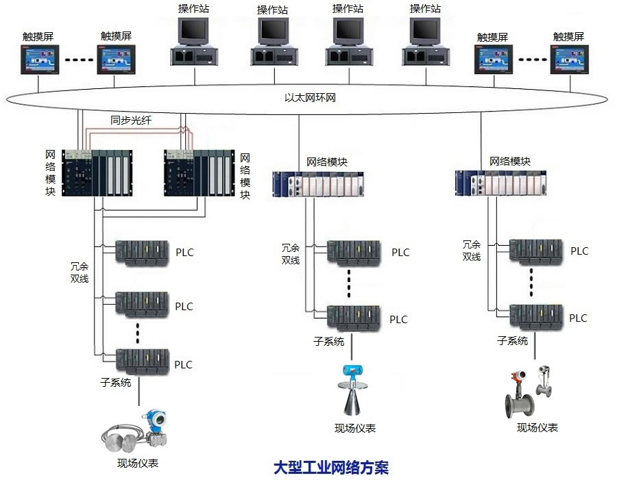 | 上位機之間通過環(huán)形工業(yè)以太冗余網(wǎng)絡(luò)連接,其他監(jiān)控上位機也通過工業(yè)以太網(wǎng)絡(luò)連接,構(gòu)成完整的集控調(diào)度監(jiān)控信息網(wǎng)絡(luò),還 |